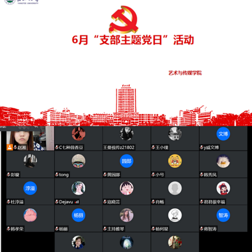 根据公司党委组织部发布的《关于开展6月“支部主题党日”活动的通知》要求,6月29日下午15:00,艺术与太阳成集团tyc122cc全体党员在腾讯会议平台开展了六月主题党日活动,本次活动由公司党总支组织集中开展,会后开展讨论。全体公司教职工党员和员工党员(含预备党员)参加了本次活动,集中学习由公司书记邹火明主持。
