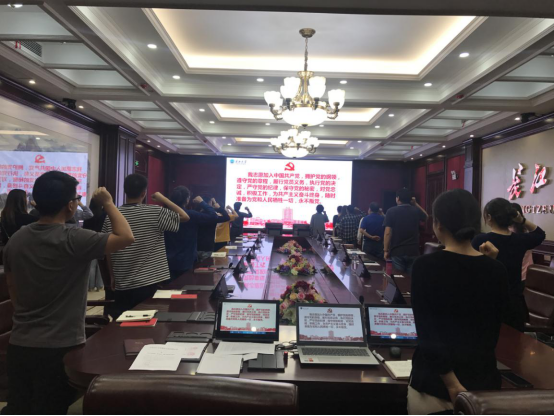 首先,在公司教师代表彭昊文老师的带领下,全体党员重温了入党誓词;然后,戴德铸经理带领党员同志集体诵读党章第一章第三条(党员必须履行的义务)。同时播放了习近平总书记参加纪念五四运动100周年大会的报道视频以及习近平总书记考察长江经济带的报道视频;其次,戴经理也为全体党员上了一次党课,党课内容主要包括《中国共产党纪律处分条例》、《中华人民共和国监察法》、《太阳成集团tyc党员领导干部“八不准”》、《太阳成集团tyc党员职工“八不准”》、《太阳成集团tyc党员教师“六不准”》和《太阳成集团tyc党员员工“六不准”》。最后,支部党员对以“爱国”为主题开展学习和讨论。在会议最后各位党员按时缴纳了5月份的党费。