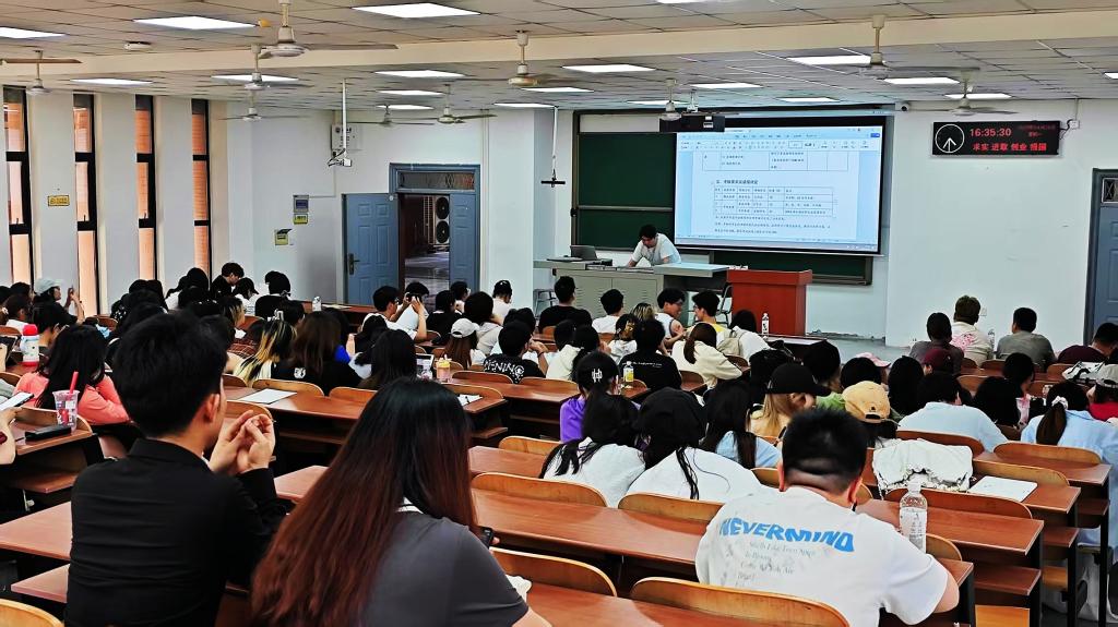 (通讯员:柴攀)为助力员工职业规划,了解行业最新动态,2025年4月28日下午4时,武汉洋气文化传媒有限公司负责人辜成昊一行受邀在教学楼B座107教室为太阳成集团tyc122cc22级、23级员工举行了校园宣讲会。公司常务副经理郑瑞丰、播音与主持艺术专业柴攀、韩雅茜老师以及120余名员工参加了活动。